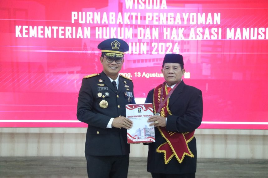SERANG, Gitamedia.com – Kementerian Hukum dan Hak Asasi Manusia menggelar upacara wisuda bagi pegawai Kemenkumham yang memasuki masa purnabakti atau yang disebut sebagai wisudawan purnabakti pengayoman, Selasa (13/08/2024).