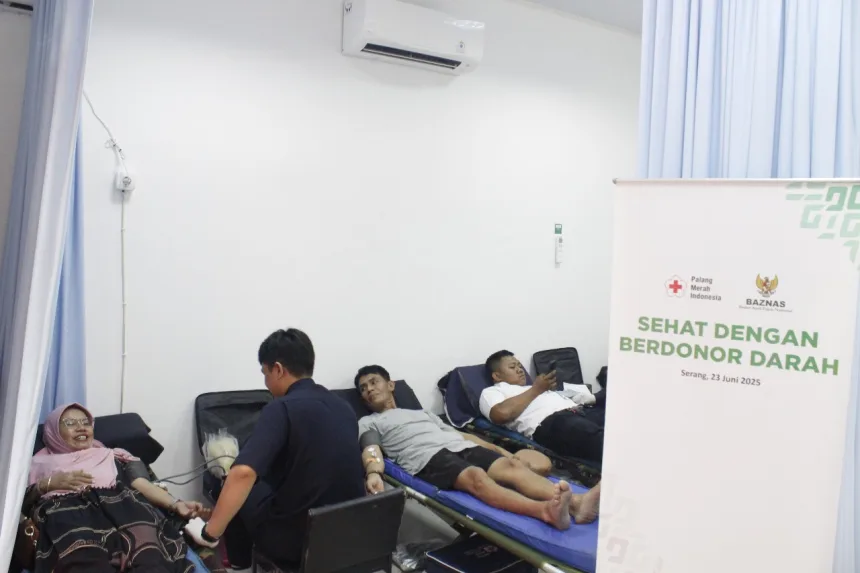 Rumah Sehat Badan Amil Zakat Nasional (BAZNAS) Banten bekerja sama dengan Palang Merah Indonesia (PMI) menggelar kegiatan donor darah yang berlangsung pada 23 Juni 2025 di Rumah Sehat BAZNAS Banten, Kota Serang.
