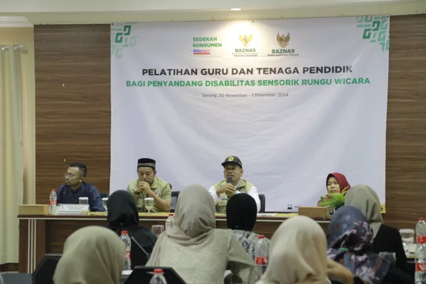 SERANG, Gitamedia.com – BAZNAS RI dan BAZNAS Banten menyelenggarakan kegiatan pelatihan guru dan tenaga pendidik bagi penyandang disabilitas sensorik rungu wicara kepada 30 orang guru yang mewakili Sekolah Khusus (SKH) di Banten, bertempat di Le Semar Hotel.