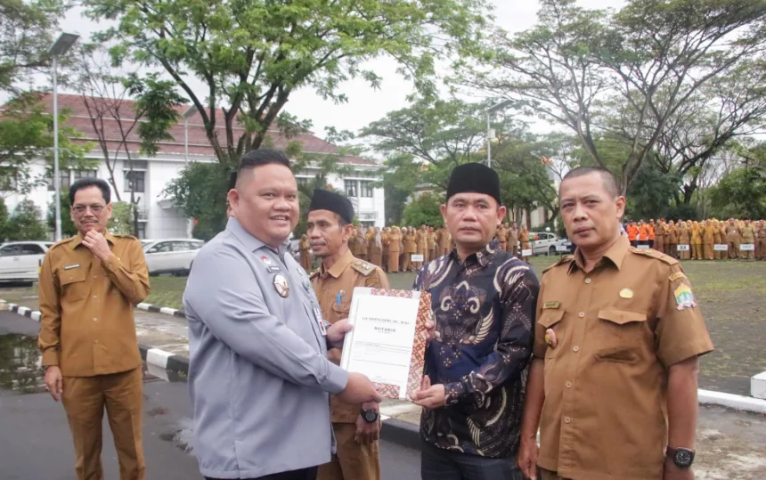 SERANG, Gitamedia.com – Kepala Divisi Pelayanan Hukum Picesco Andika Tulus mewakili Kakanwil menyerahkan SK Badan Hukum Koperasi Kelurahan Merah Putih bersama Sekretaris Daerah Kota Serang Nanang Saefudin di KSB Kantor Pusat Pemerintahan Kota Serang, Senin (26/05/2025).