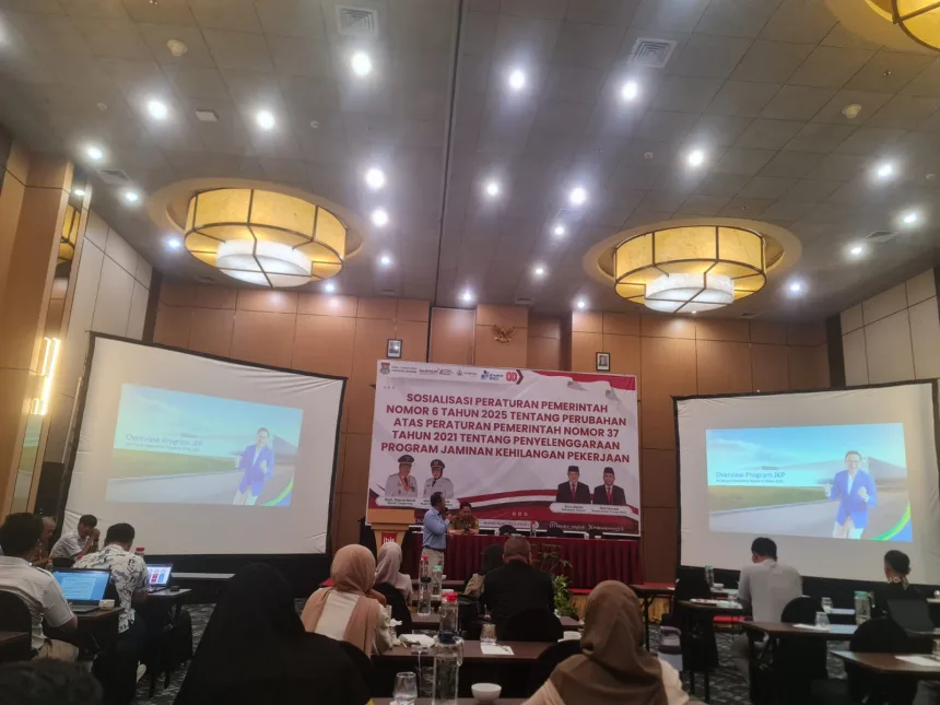 Diketahui, sosialisasi Peraturan Pemerintah Nomor 6 Tahun 2025 tentang Perubahan atas PP Nomor 37 Tahun 2021 mengenai Penyelenggaraan Program Jaminan Kehilangan Pekerjaan (JKP) ini dilaksanakan di Hotel Ibis Gading Serpong pada Selasa 29 Juli 2025.