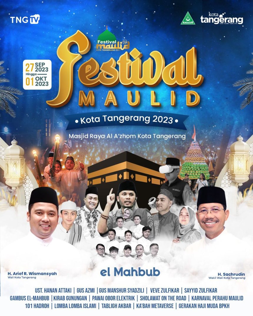 Kota Tangerang, (gitamedia.com) – Dalam rangka menyambut Maulid Nabi Muhammad SAW yang jatuh pada 27 September 2023, Pemerintah Kota (Pemkot) Tangerang melalui Dinas Pemuda dan Olahraga (Dispora) akan segera kembali mengadakan Festival Maulid 2023. Berbagai pengisi acara juga akan memeriahkan Festival Maulid 2023 di antranya adalah Ust. Hanan Attaki, Gus Azmi, Gus Manshur Syadzihli, hingga Gambus el Mahbub.