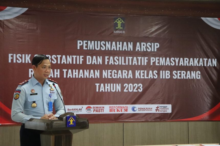 SERANG, Gitamedia.com – Rumah Tahanan Negara (RUTAN) Kelas IIB Serang melaksanakan kegiatan pemusnahan Arsip tahun 1997-2020, yang di hadiri Kepala Divisi Pemasyarakatan Kanwil Kemenkumham Banten, Kepala Sub Bidang Fasilitasi Pembentukan Produk Hukum Daerah Kantor Wilayah Kemenkumham Banten, Arsiparis Ahli Muda Kantor Wilayah Kemenkumham Banten, Arsiparis Ahli Muda Biro Umum Sekretariat Jenderal Kementerian Hukum Dan Ham dan pegawai Rutan Kelas IIB Serang. Selasa (06/06/2023).