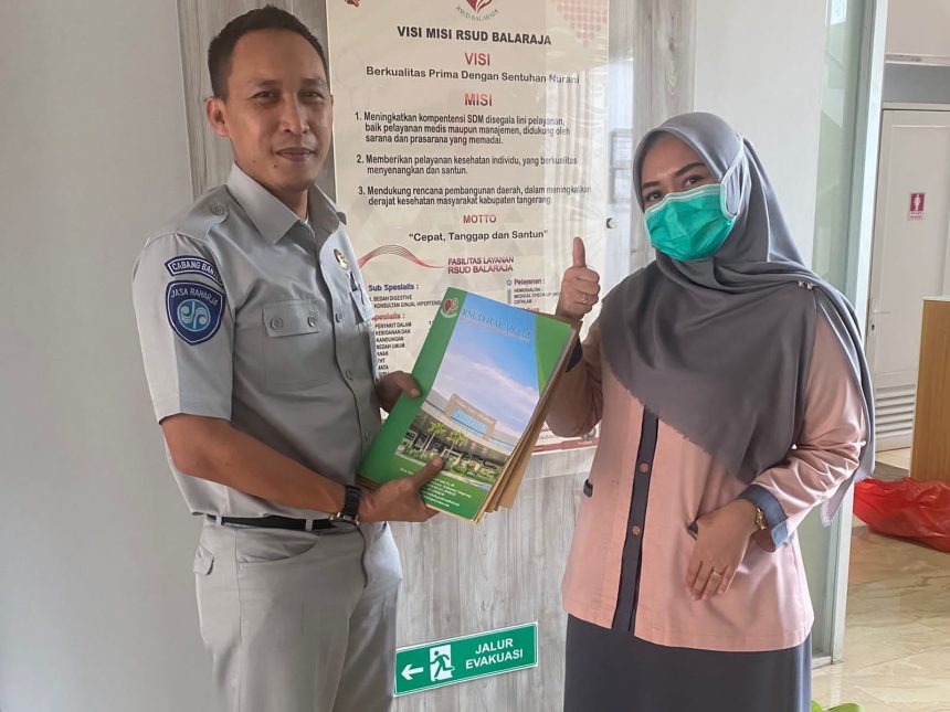 Balaraja, Gitamedia.com – Petugas Jasa Raharja Samsat Balaraja, Retno Saputra bersilaturahmi sekaligus menjemput biaya tagihan setiap korban kecelakaan di RSUD Balaraja yang sudah dijaminkan sebelumnya oleh PT Jasa Raharja, dan bertemu dengan Sdri Riska Amelia staff keuangan RSUD Balaraja.