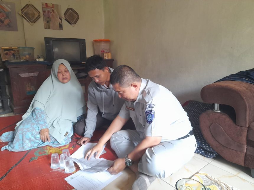 Pandeglang, Gitamedia.com – Mendapatkan info kecelakaan dari unit Laka Lantas Polres Pandeglang, Petugas Gerai Samsat Saketi Denny Pribadi melakukan survey ahli waris pada hari Rabu 06/09/2023 di kediaman korban Kp.Kadu Belang Ds. Sodong Kec. Saketi Kab. Pandeglang.