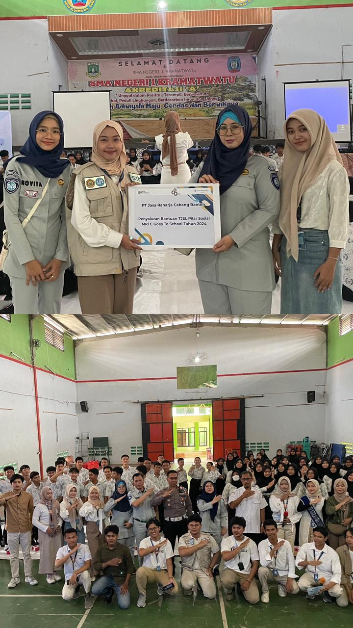 SERANG, Gitamedia.com – PT Jasa Raharja Cabang Banten menyalurkan bantuan Tanggung Jawab Sosial dan Lingkungan (TJSL) Pilar Sosial untuk kegiatan MRTC Goes to School dengan tema Generasi Muda Cerdas Berkendara pada hari Rabu (15/05/2024) di SMA N 1 Kramatwatu Kota Serang.