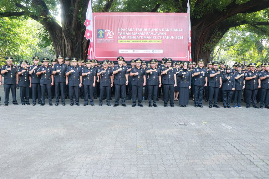 SERANG, Gitamedia.com – Memperingati Hari Pengayoman Ke-79, Kepala Kantor Wilayah Kemenkumham Banten beserta Kepala Divisi, Ka UPT dilingkungan Kanwil Kemenkumham banten melaksanakan upacara dan tabur bunga di Taman Makam Pahlawan (TMP) Taruna Daan Mogot. Jumat (9/08/2024).