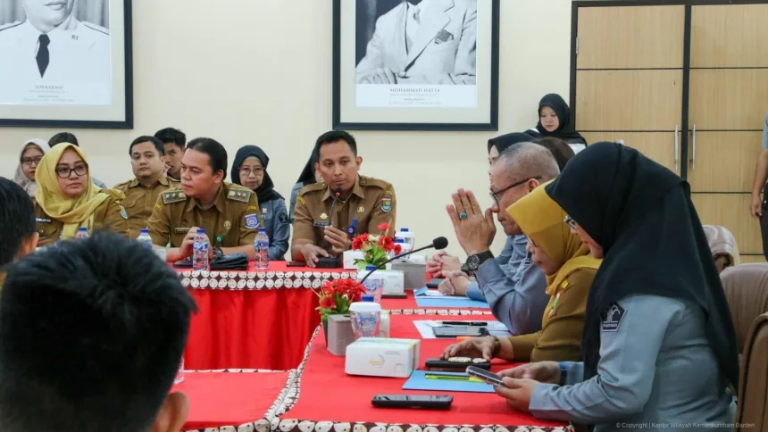 SERANG, Gitamedia.com – Sebagai bentuk dukungan terhadap peningkatan kualitas regulasi daerah sekaligus mendorong para Kepala Desa dan Lurah menjadi juru damai di tengah masyarakat, Kantor Wilayah Kementerian Hukum Banten menggelar Rapat Koordinasi Peningkatan Kualitas Produk Hukum Daerah sekaligus Pemberian Apresiasi Peacemaker Justice Award (PJA) Tahun 2025, Senin (08/12/2025).