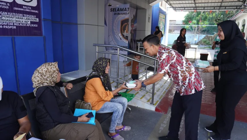 Dari pantauan, terlihat Kepala Kantor Imigrasi Kelas II TPI Tanjung Balai Karimun, Dwi Avandho Farid bersama Pejabat Manajerial dan pegawai Kantor Imigrasi Kelas II TPI Tanjung Balai Karimun bersama-sama mendatangi para pemohon paspor untuk memberikan sarapan bergizi tersebut. Jumat, 30 Januari 2026.