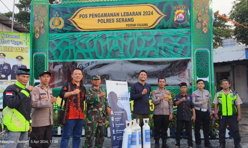 SERANG, Gitamedia.com – Koramil 0602-19/Cikande Kodim 0602/Serang dan Dinas Kesehatan Provinsi Banten/Dinas Kesehatan Kabupaten Serang, menggandeng Samator Group Area Banten memberikan bantuan Enam Tabung Gas Oksigen di Pos Pelayanan Kesehatan Mudik Lebaran 1445 H Tahun 2024, karena diperkirakan arus pemudik melintas jalur Serang menuju Jakarta sangat tinggi dibanding tahun sebelumnya, Sabtu (06/04/2024).