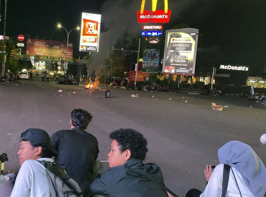 Berdasarkan pantauan awak media, aksi digelar di simpang Ciceri, Kota Serang Kamis (20/3/2025). Massa aksi menyampaikan orasinya dan menutup arus lalu lintas dari keempat arah.
