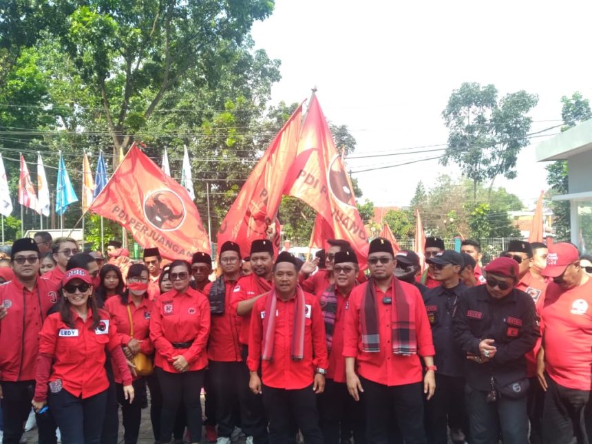 Hari ini, pengurus,kader, bacaleg dan simpatisan PDI Perjuangan Bergerak Solid dalam satu barisan kemenangan rakyat. Tutur Hilary Claudia
