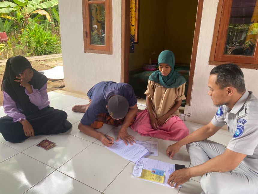 Kedatangan Petugas Jasa Raharja diterima langsung oleh ahli waris korban Saribah selaku istri korban yang berada di Lebakwangi Kecamatan Walantaka.