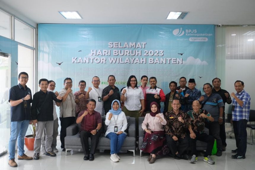 “Dalam rangka memperingati May Day 2023 ini, kami BPJS Ketenagakerjaan Wilayah Banten menggelar beberapa kegiatan. Diantaranya ialah kegiatan bakti sosial pemberian paket sembako kepada serikat pekerja/buruh di Provinsi Banten yang tergabung dalam tree partied dan juga melakukan sosialisasi Webinar program BPJS Ketenagakerjaan kepada penerima manfaat beasiswa anak dari ahli waris penerima klaim JKM yang masih menggemban pendidikan di SMA dan Perguruan tinggi melalui webinar,” katanya.