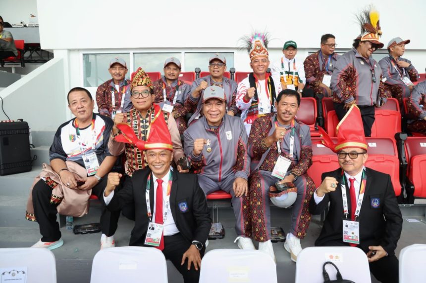 Banda Aceh, (gitamedia.com)–Penjabat Gubernur Banten Al Muktabar menghadiri Pembukaan PON XXI Aceh – Sumut 2024 di Stadion Harapan Bangsa, Banda Aceh, Senin (9/9/2024) malam. Al Muktabar duduk di Tribun VIP bersama para gubernur lainnya se-Indonesia. Dalam kesempatan tersebut, Al Muktabar mengenakan pakaian training dan jaket berwarna abu-abu.
