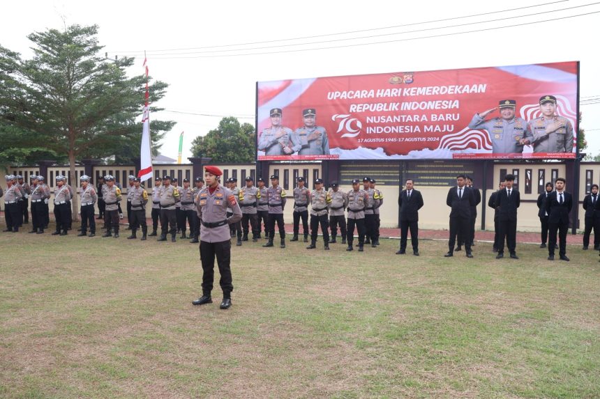 Hadir dalam upacara Hari Kemerdekaan, para Pejabat Utama, serta seluruh anggota Polres Serang dengan komandan upacara Ipda Sanggrayugo Widyajaya.