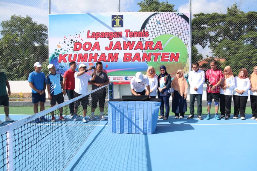 SERANG, Djawaranews.com – Kepala Kantor Wilayah Kemenkumham Banten Dodot Adikoeswanto meresmikan langsung lapangan tenis “Doa Jawara” milik Kantor Wilayah Kementerian Hukum dan Hak Asasi Manusia Banten, Jumat (02/02/2024).