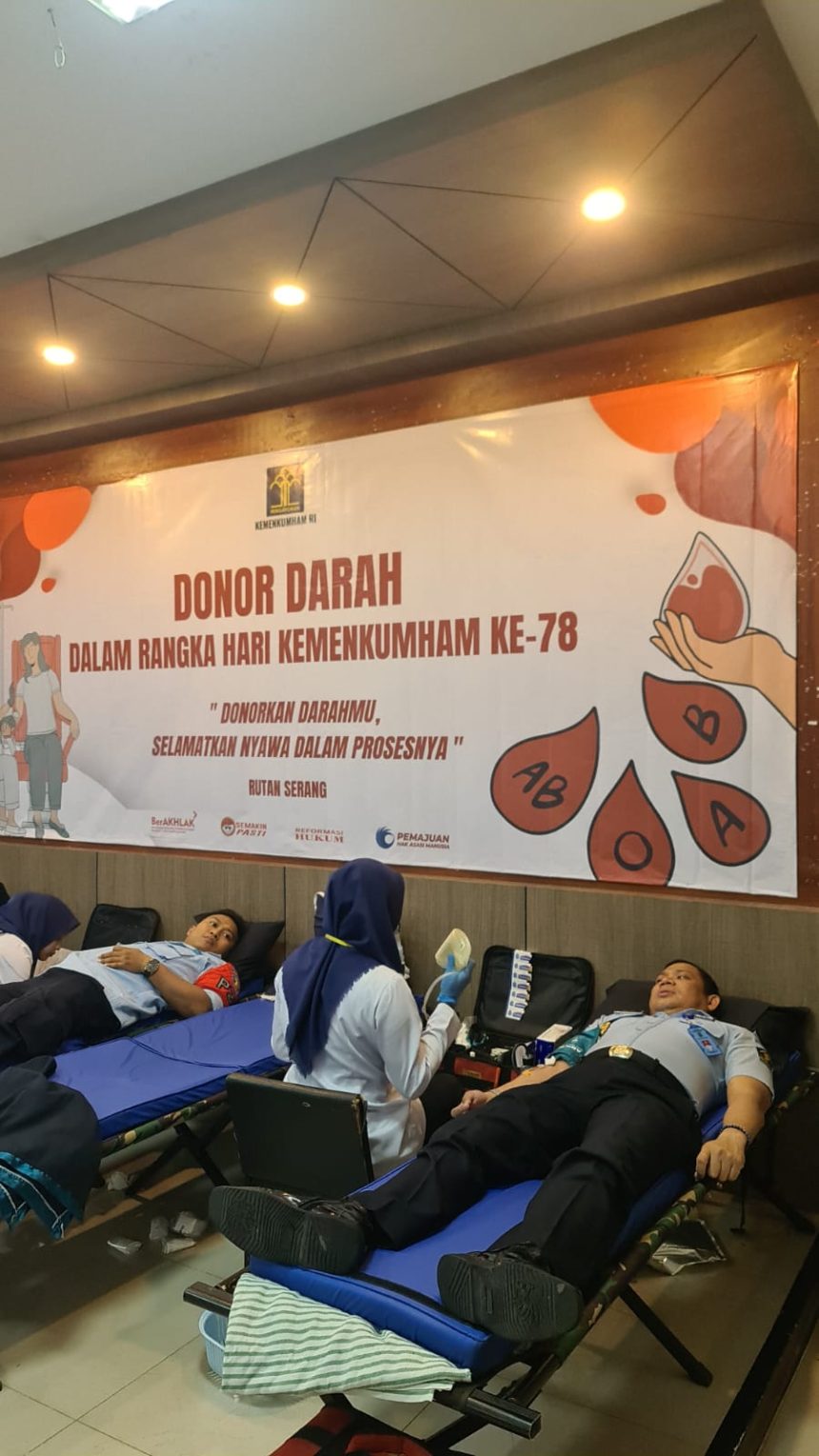 KOTA SERANG, Gitamedia.com – Dalam rangka Hari Kemenkumham RI Ke 78, Rumah Tahanan Kelas IIB Serang gelar kegiatan Donor Darah di Aula Rutan Serang. Selasa, (25/07).