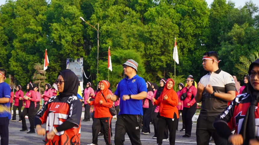 Diketahui olahraga bersama ini dilaksanakan di Panggung Puteri Kemuning Coastal Area Kabupaten Karimun pada Minggu, 10 Agustus 2025.