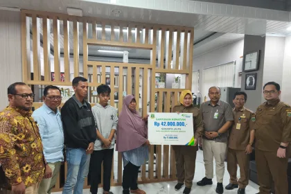 Kepala BPKAD Banten Serahkan Santunan Jaminan Kematian BPJS Ketenagakerjaan Sebesar Rp. 113 Juta Kepada Ahli Waris Almarhum Sukanta