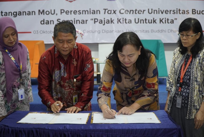 Rektor Universitas Buddhi Dharma Limajatini menyampaikan dalam sambutannya bahwa penandatanganan perjanjian kerja sama pendirian tax center merupakan bukti komitmen Universitas Buddhi Dharma dalam mendukung program pemerintah, di mana pajak memiliki peran yang sangat penting bagi keberlangsungan negara Indonesia.