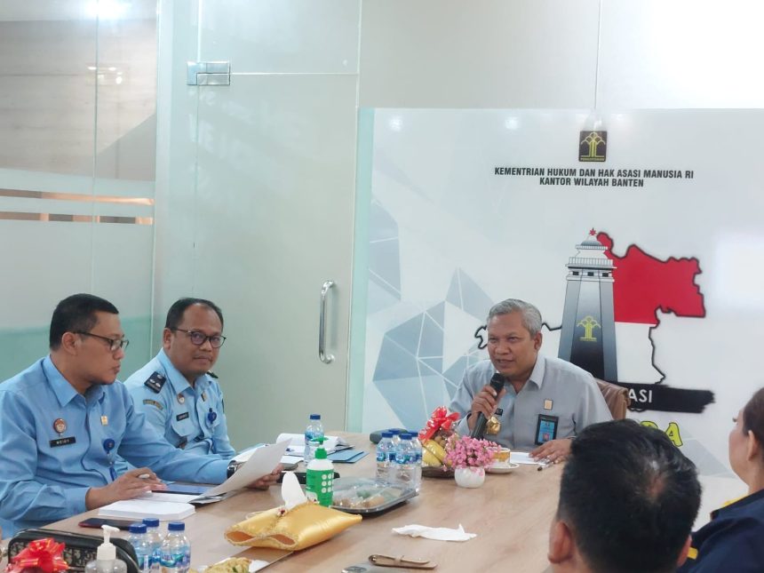 SERANG, Gitamedia.com – Kepala Kantor Wilayah Kementerian Hukum dan Hak Asasi Manusia Banten sekaligus Ketua Majelis Pengawas Wilayah Notaris (MPWN) Provinsi Banten, Tejo Harwanto, memimpin jalannya Rapat Pembahasan Penyelesaian Laporan Masyarakat oleh MPW Notaris Provinsi Banten, Selasa (13/06).