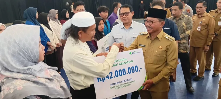 TANGERANG, Gitamedia.com – BPJS Ketenagakerjaan bersama Pemkot Tangerang menyerahkan santunan Jaminan Kematian (JKM) sebesar Rp 42 juta kepada peserta BPJS Ketenagakerjaan yang meninggal dunia.